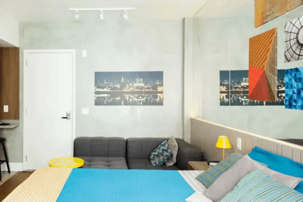 STÚDIO TOTALMENTE MOBILIADO, será entregue conforme as fotos, com todos eletro / eletrônicos, cama queen nível hotelaria com box, além de louças, talheres, roupas de cama e banho.
