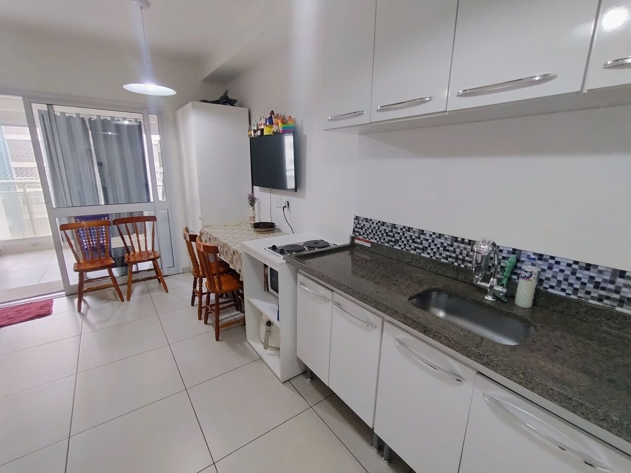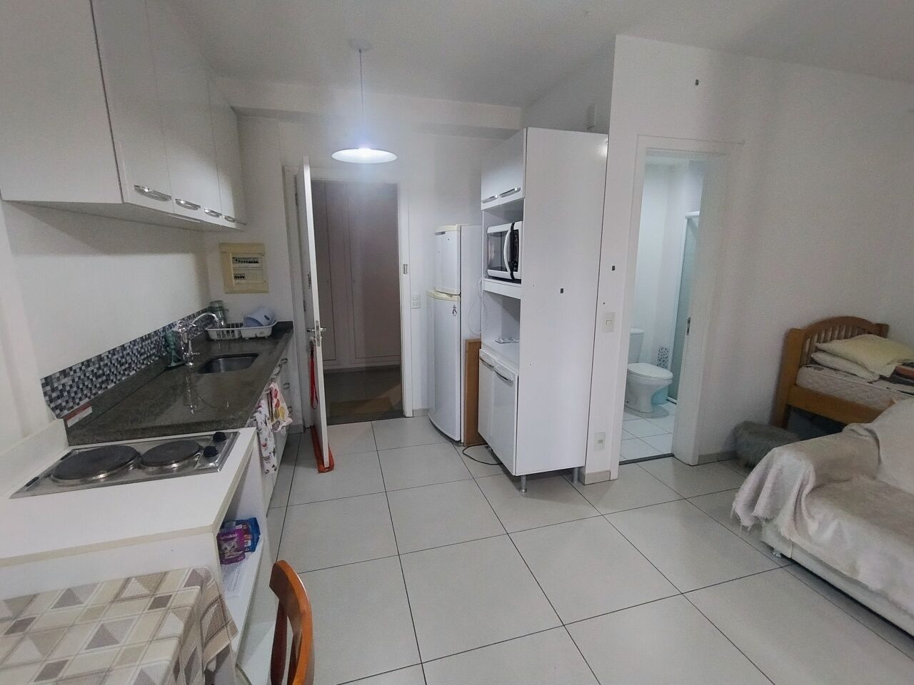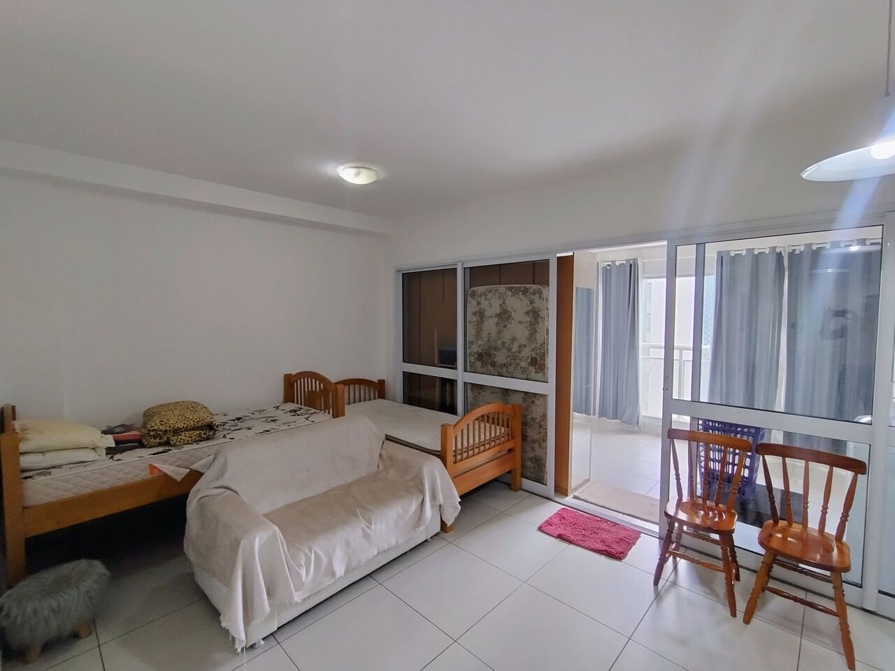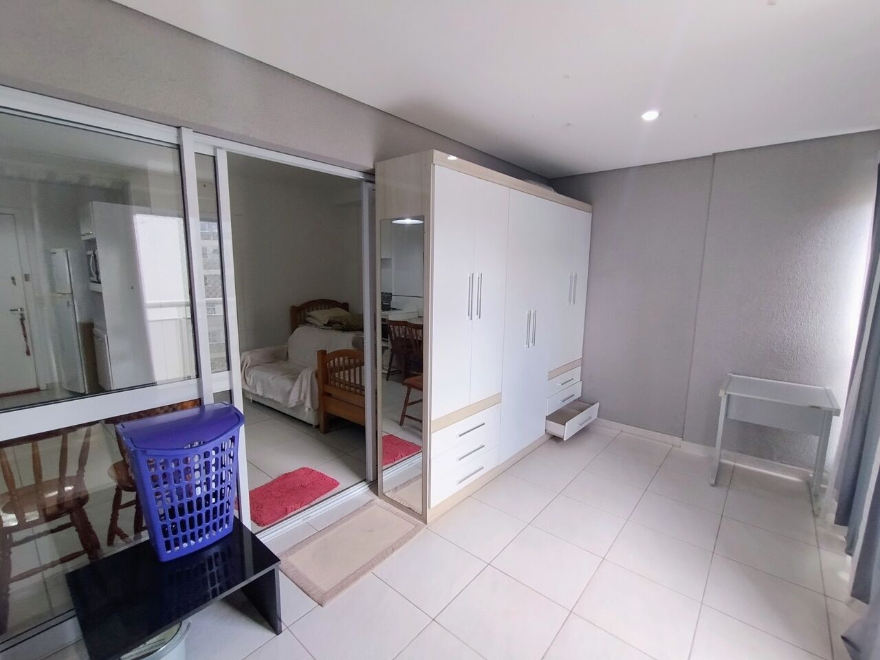 1 Dormitório integrado com a Sala e o Terraço grande fechado em Vidro.