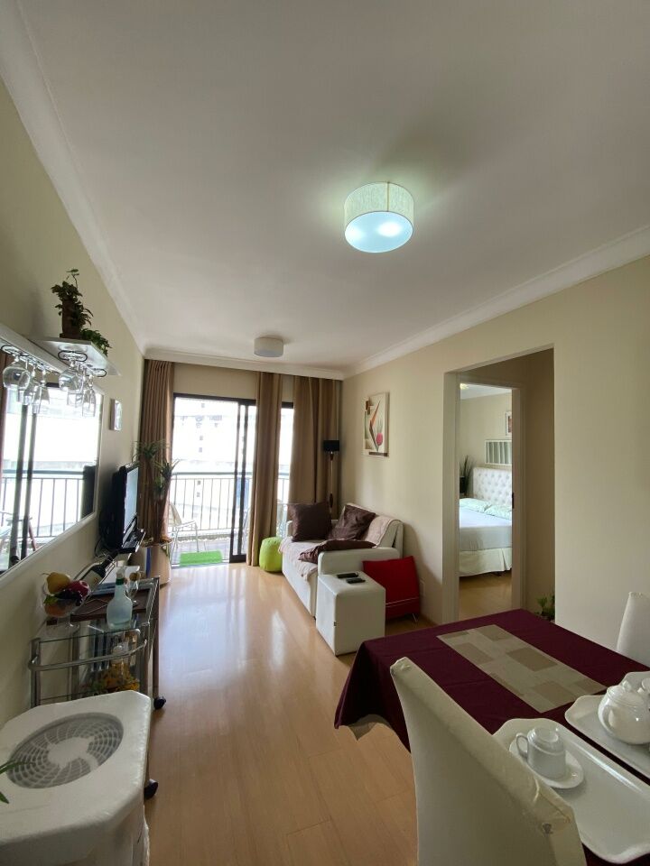 Lindo apartamento Todo mobiliado, com cozinha completa, 1 dorm. com guarda roupas, sacada grande, com 1 vaga. Condomínio com lazer e segurança completo, portaria 24hs, marque já uma visita com corretor FABIO (11)96455 1481