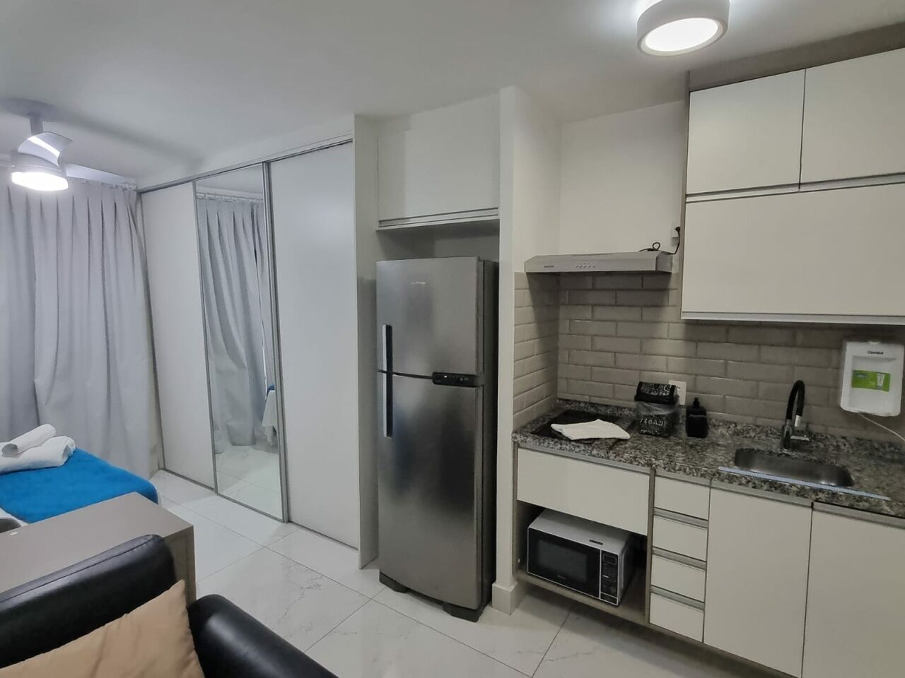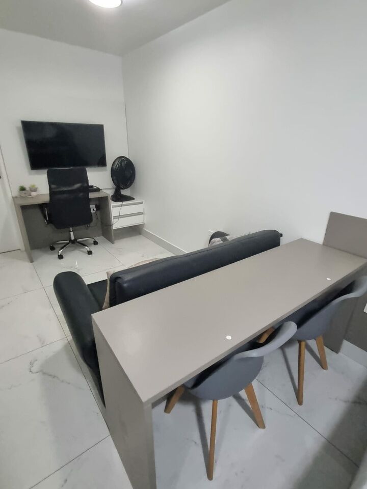Equipamentos inclusos no valor do imóvel: armários, espelhos, pendurador de toalhas, box de vidro, espelhos, mesa de jantar, mesa de trabalho articulada, 3 cadeiras, aparadores, cama box, colchão Americanflex, geladeira inox Electrolux, fogão coocktop por indução Fischer, cafeteira, mixer, sanduicheira, torradeira, ferro de passar roupas, secador de cabelo, chaleira elétrica, jogo de panelas, Smart TV LG 32", micro-ondas, ventilador de teto, ventilador portátil, luminárias e chuveiro.