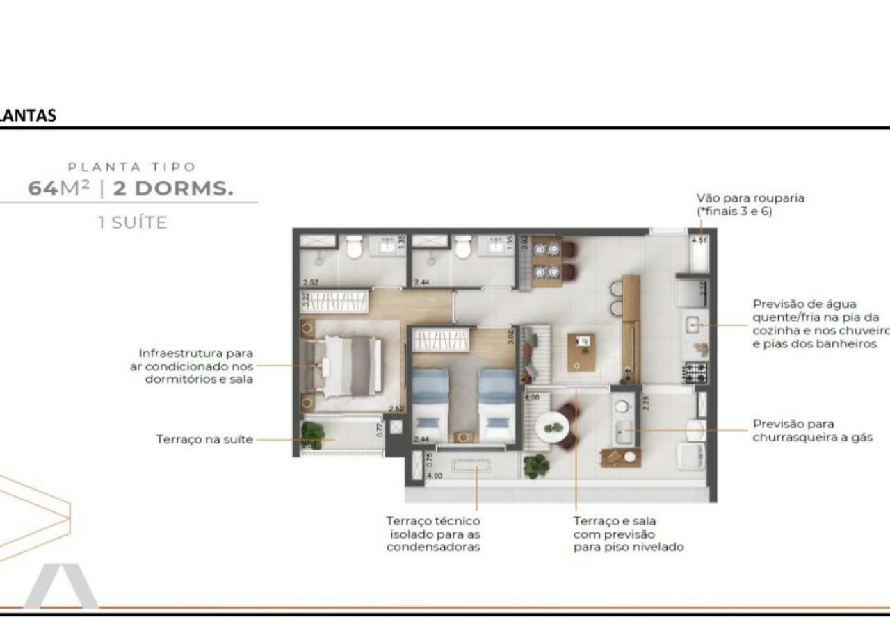 Apartamento de 2 Dormitórios com terraço gourmet.