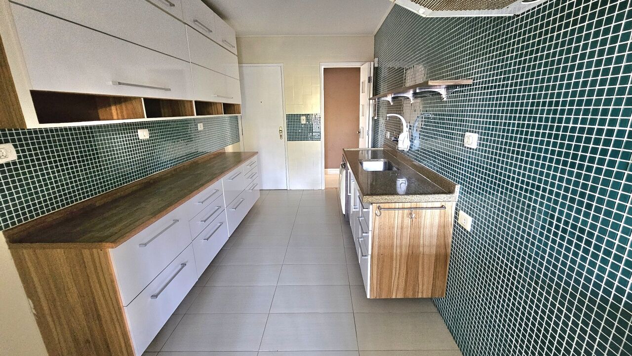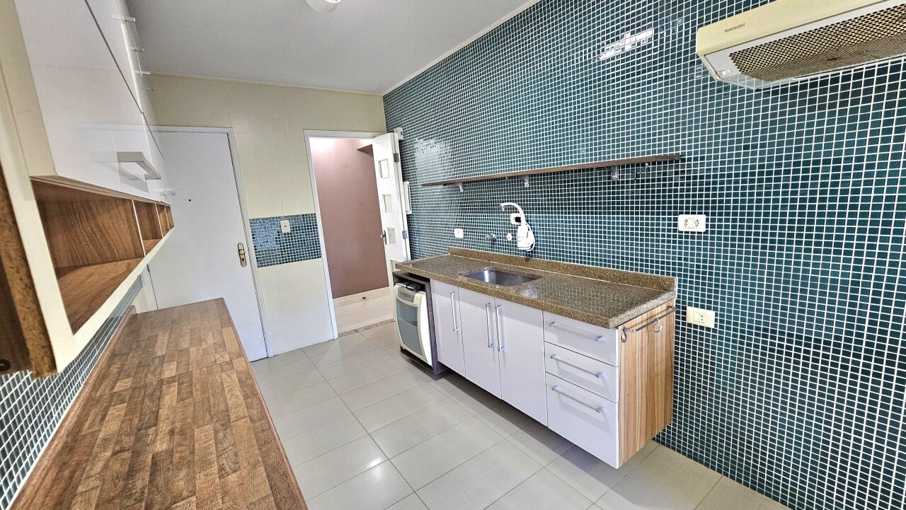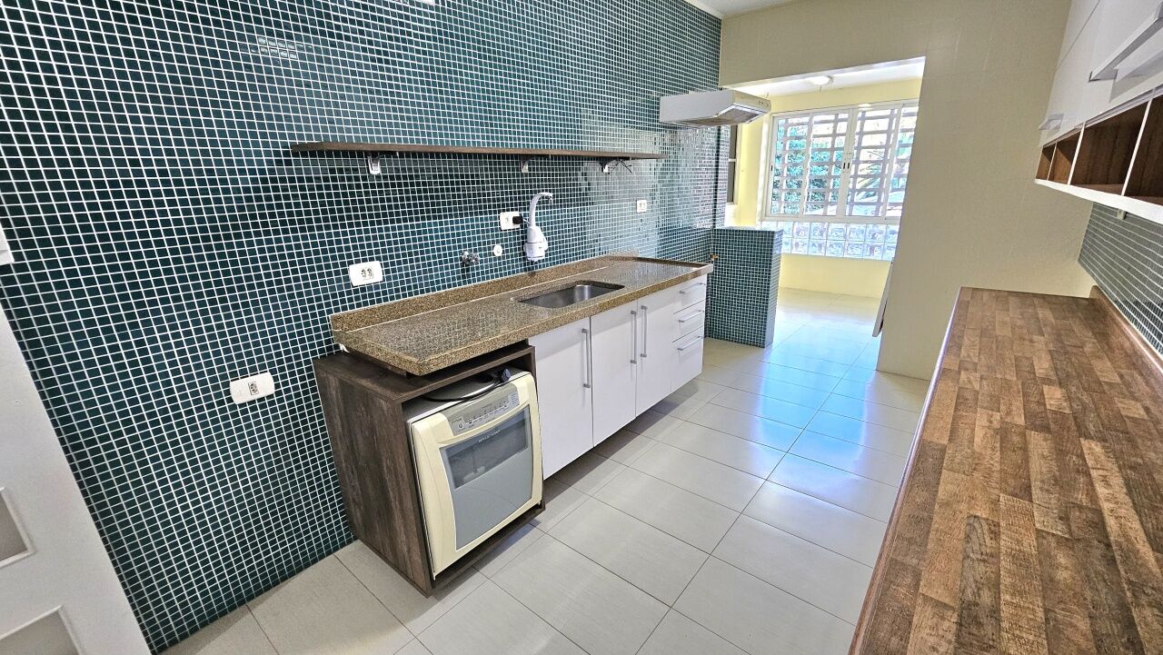 Cozinha com armários planejados e área de serviço